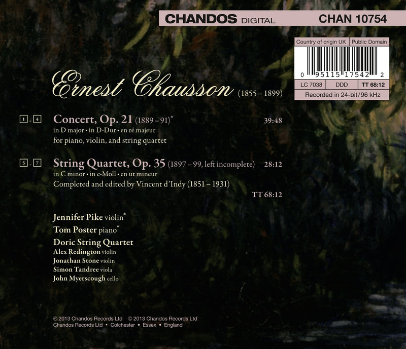ChandosChausson: Concert for Piano, Violin & String Quartet; String Quartet / Doric, Pike, Poster