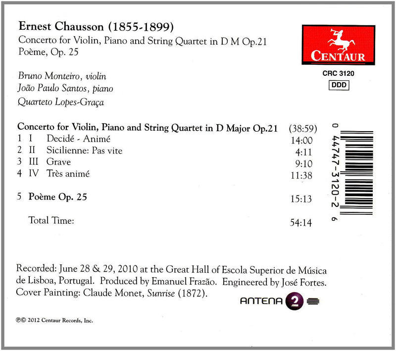 Centaur RecordsChausson: Concerto for Violin, Piano & String Quartet in D m