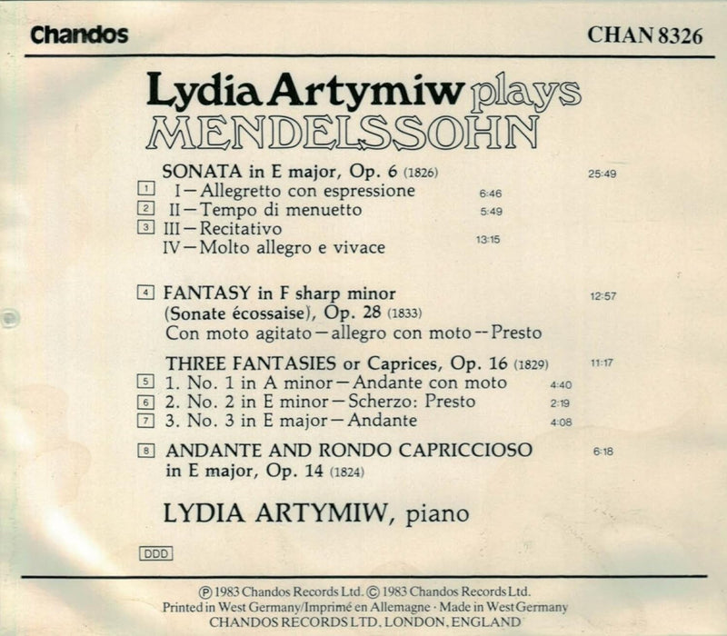 ChandosMendelssohn: Piano Works / Lydia Artymiw