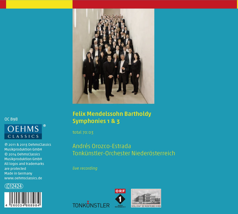 •For their second OehmsClassics recording, the Lower Austrian Tonkünstler Austria decided on the Mendelssohn First and Third Symphonies. Recorded live at the...