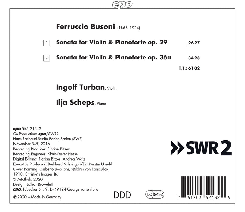CPOBusoni: Violin Sonatas / Turban, Scheps“For a long time no child prodigy has appealed to us so sympathetically as the little Ferruccio Busoni. Precisely because he has...