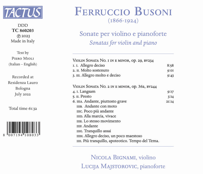 On SaleTactusBusoni: Sonate per violino e pianoforteFerruccio Busoni (Empoli 1866 – Berlin 1924) died the same year as Puccini and was born when Puccini was a child, yet...