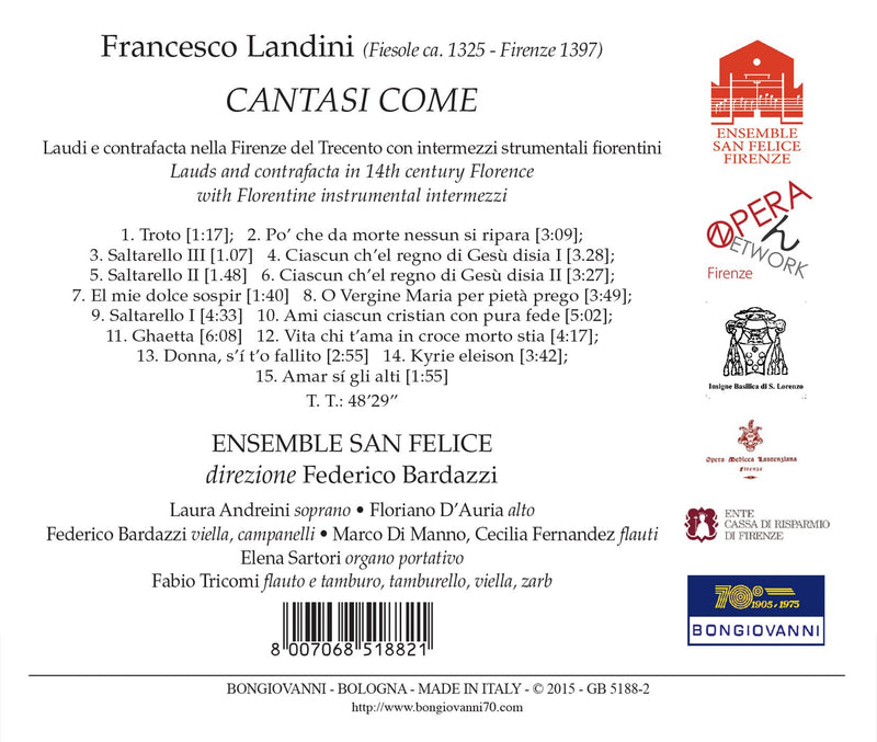 BongiovanniFrancesco Landini: Cantasi Come