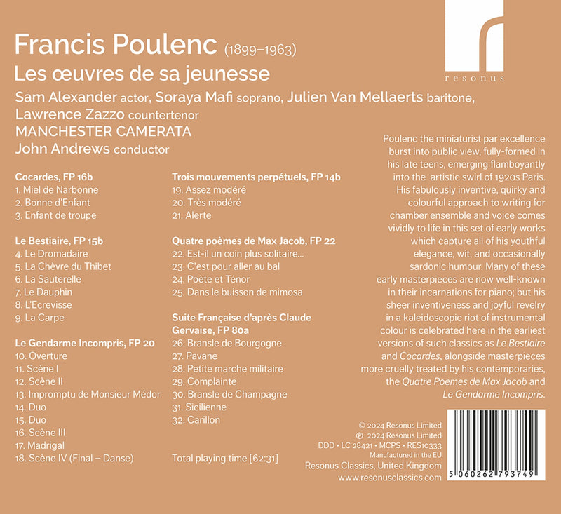 Resonus ClassicsPoulenc: Les oeuvres de sa jeunesse / Andrews, Manchester Camerata