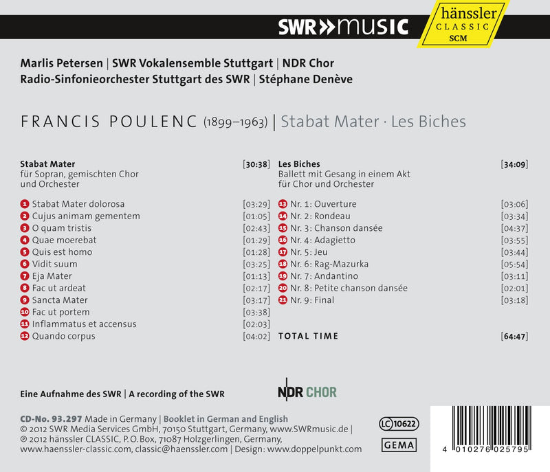 SWRPoulenc: Stabat Mater; Les Biches / Deneve, Stuttgart Radio Symphony