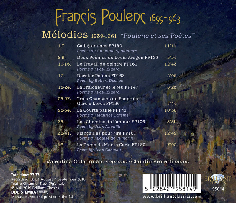 On SaleBrilliant ClassicsPoulenc: Melodies 1939-1961 "Poulenc et ses Poetes" / Coladonato, Proietti