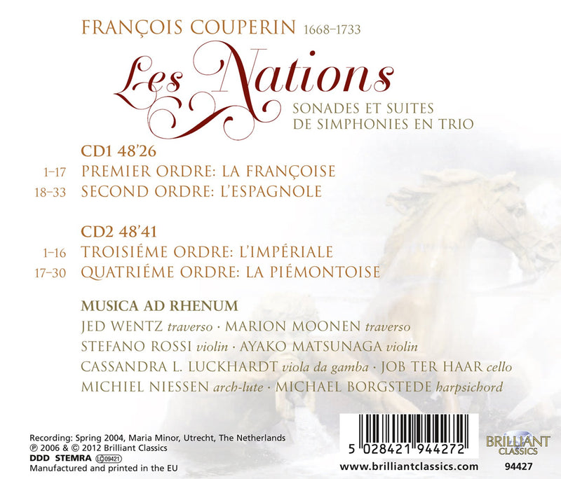 Brilliant ClassicsCouperin: Les NationsThough Couperin was a contemporary of J.S. Bach his fashionable life at Versailles could serve to make that great German seem quite...