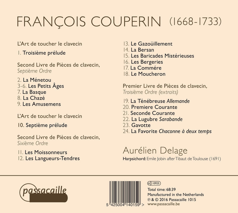 PassacaillePIECES DE CLAVECINAurélien Delage has recorded with numerous artists and received invitations to festivals around the world. Delage became passionately interested in early instrument...