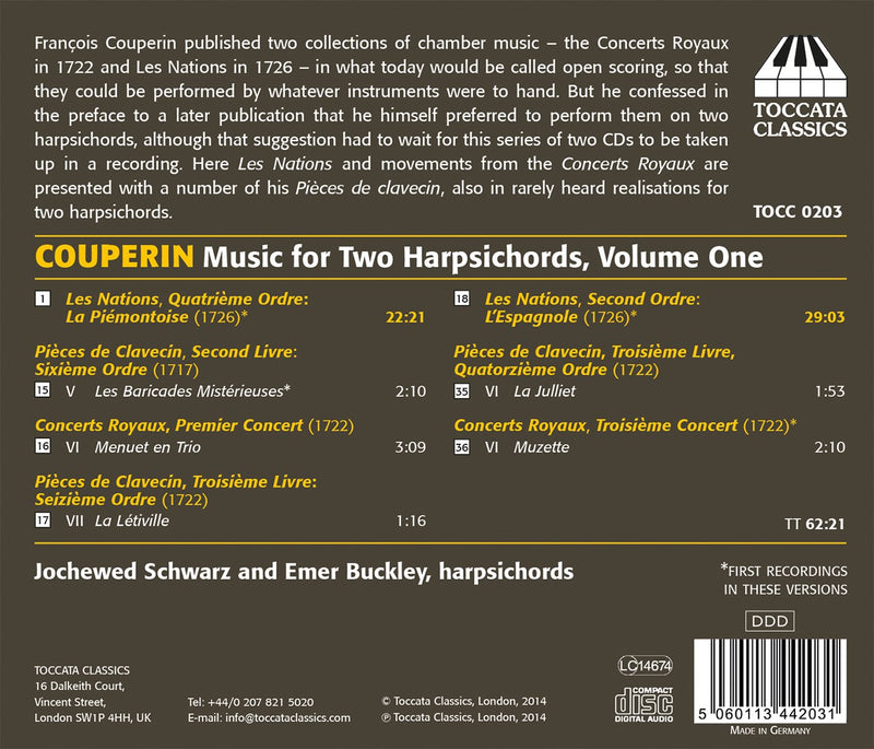 On SaleToccataCouperin: Music For Two Harpsichords, Vol. 1