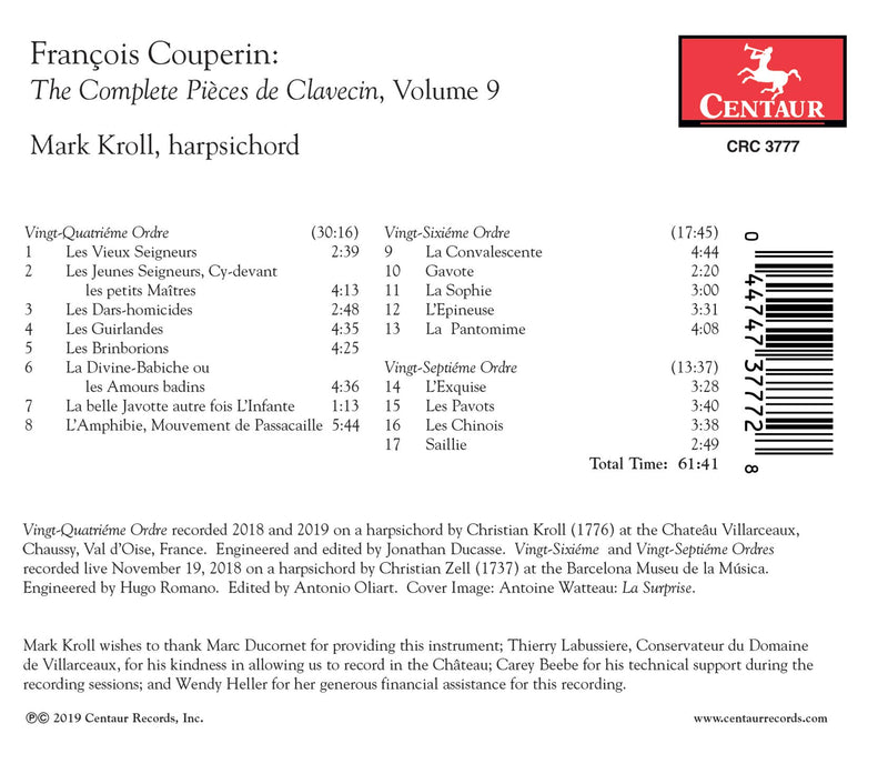 Centaur RecordsCouperin: The Complete Pieces De Clavecin, Vol. 9 / Mark Kroll