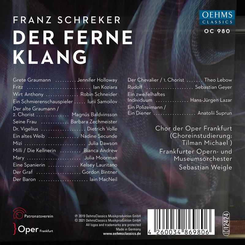 "Oper Frankfurt is arguably the “right” company to produce this Der ferne Klang recording, because Austrian composer Franz Schreker (1878-1934) had a special connection with this opera house. It was here that he scored his first big success with this opera, followed by the premiere of his complete version of Die Gezeichneten, two of his most definitive works. His musical idiom is decidedly Late/Post Romantic, yet uniquely his own, beguiling in its lush and translucent tone colours. His style can also extend into an intensely expressionistic and harmonically adventurous, if unsettling, musical soundscape. At the height of his fame during the early years of the Weimar Republic, Schreker was the most performed opera composer after Richard Strauss. He was also a noted pedagogue, as director of Berlin’s Hochschule für Musik, and counted Berthold Goldschmidt and Ernst Krenek as his students. But by the late 1920s, with the rise of National Socialism and its inherent antisemitism, Schreker, who was Jewish, lost his academic appointments and his compositions were banned. Sadly he descended into obscurity, suffered a stroke and died at the age of 56. It was only in the 1980s, through Decca’s “Entartete Musik” series, that Schreker reemerged from a decades-long obscurity. His revival gathered momentum both in Germany and America. Salzburg Festival’s striking 2005 Die Gezeichneten garnered critical and audience accolades, reaffirmed by the more recent Warlikowski production in Munich, which made a powerful (if nightmarish) impression on me in 2017...