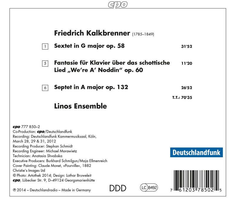 On their latest CD, the Linos Ensemble offer new discoveries and rewarding additions to the chamber repertoire: works by Friedrich Kalkbrenner (1785-1849),...