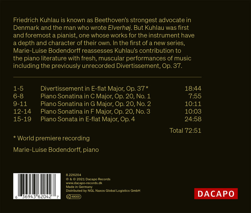 On SaleDacapo ClassicalWorks for Solo Piano, Vol. 1 / Marie-Luise BodendorffFriedrich Kuhlau is known as Beethoven’s strongest advocate in Denmark and the man who wrote Elverhøj. But Kuhlau was first and foremost...