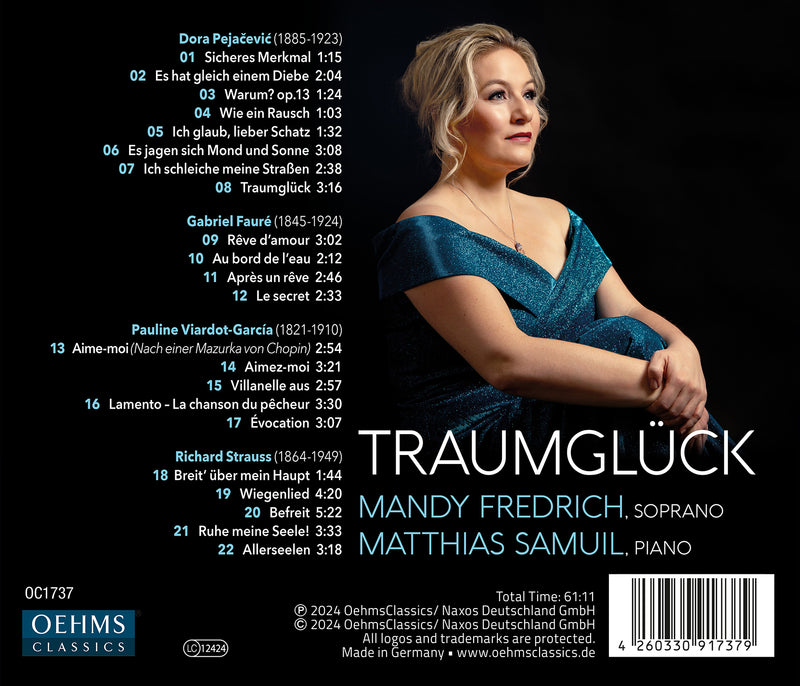 Oehms ClassicsTraumglück / Mandy FredrichMandy Fredrich's album brings together a series of art songs that create coherent arcs and longer storylines like a kind of mini-opera....