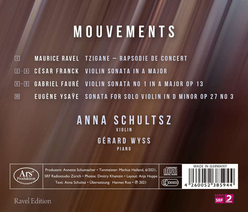 Ars ProduktionFauré, Franck, Ravel, Ysaÿe: Mouvements / Schultsz, Wyss