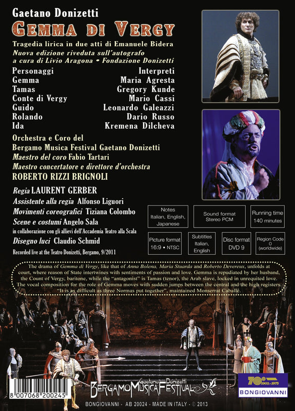 DONIZETTI Gemma di Vergy • Roberto Rizzi Brignoli, cond; Maria Agresta ( Gemma ); Gregory Kunde ( Tamas ); Mario Cassi (...