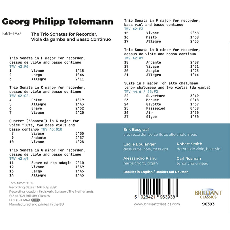 Brilliant ClassicsTelemann: Trio Sonatas for Recorder & Viola da Gamba / Bosgraaf, Boulanger, Pianu, Rosman, Smith