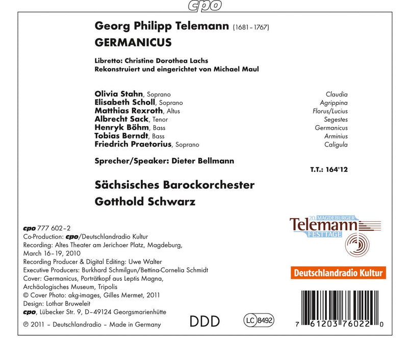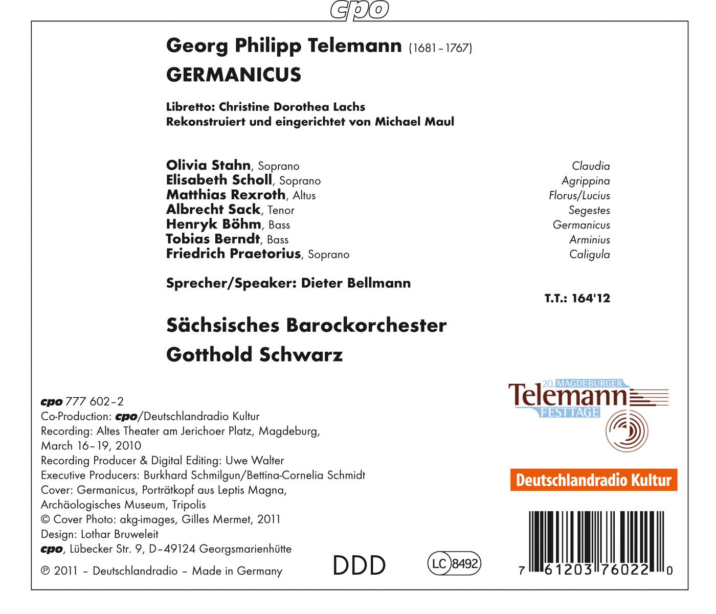 Includes work(s) by Georg Philipp Telemann. Ensemble: Michaelstein Telemannisches Collegium. Conductor: Ludger Rémy.