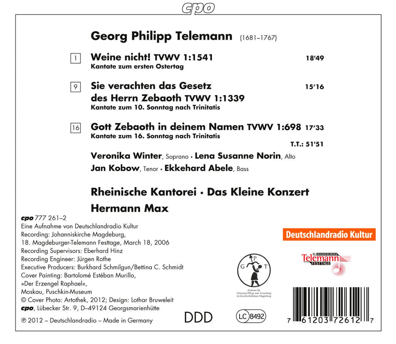 CPOTelemann: Gott Zebaoth In Deinem Namen: Kantaten Vol. 2 / Max, Rheinische Kantorei, Das Kleine Konzert