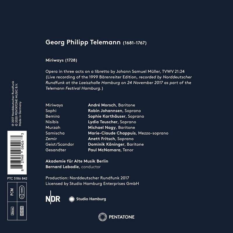 PENTATONE presents Telemann’s rarely-performed opera Miriways (1728) with a stellar cast and the Akademie für Alte Musik Berlin conducted by Bernard Labadie....