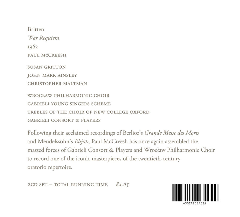 BRITTEN War Requiem • Paul McCreesh, cond; Susan Gritton (sop); John Mark Ainsley (ten); Christopher Maltman (bar); Gabrieli Young Singers’ Scheme; Trebles...