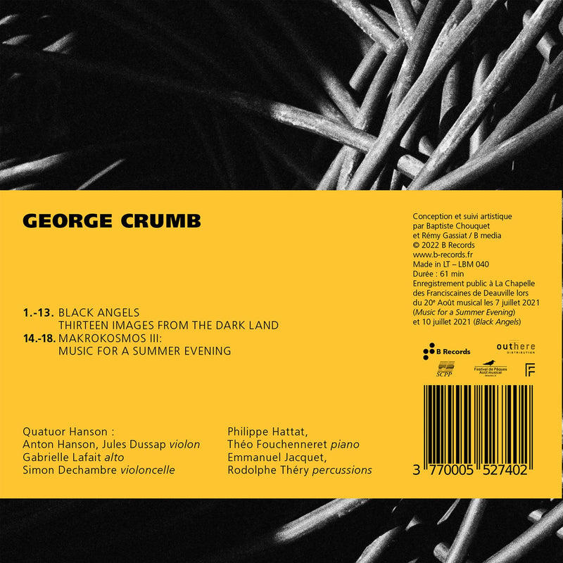 B RecordsCrumb: Black Angels & Music for a Summer Evening / Quatuor HansonThis is ritual music filled with angels and demons, mystical incantations, amazing percussion and supernatural harmonies. The work of American composer George...