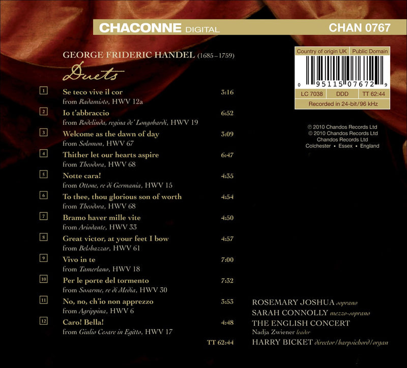 ChandosHandel: Duets / Bicket , Connolly, Joshua, English Concert
