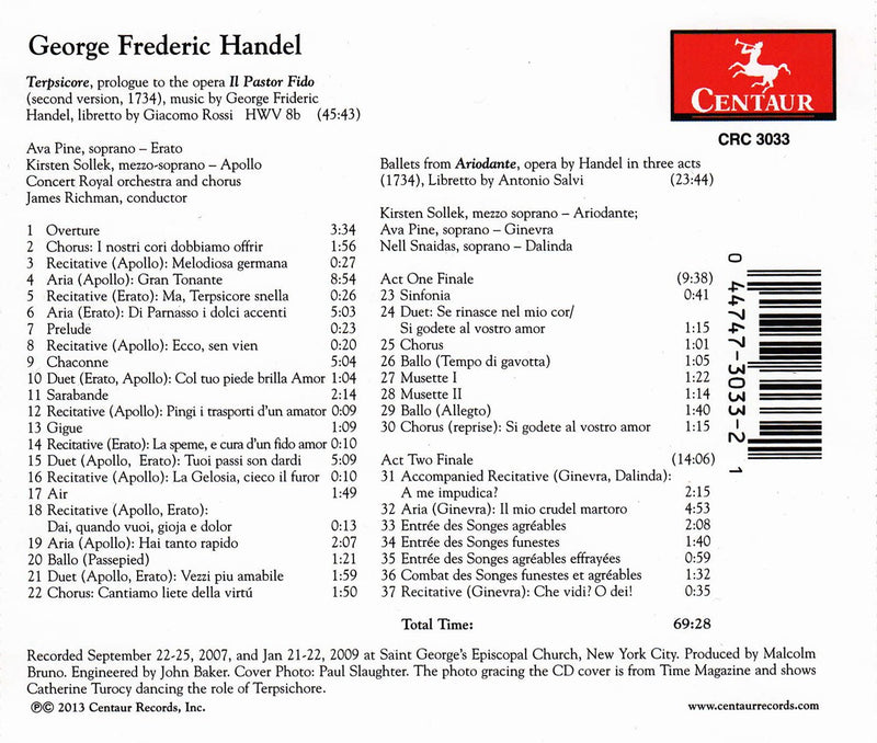 Centaur RecordsHandel: Terpsicore - Ballet Scenes from Ariodante