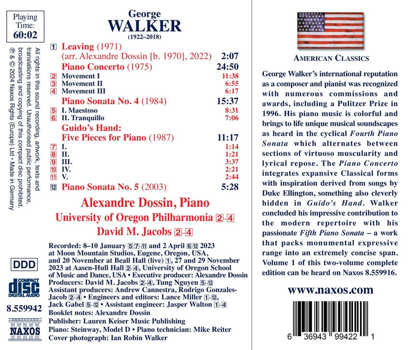 This second volume of George Walker's piano music joins its predecessor on Naxos 8.559916 (April 2024), together forming a unique complete piano...