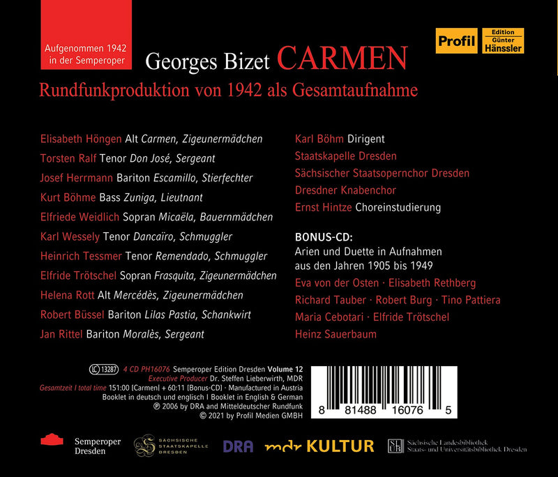 On SaleProfilBizet: Carmen (Semperoper Edition, Vol. 12) (1942) / Böhm, Dresden State Opera