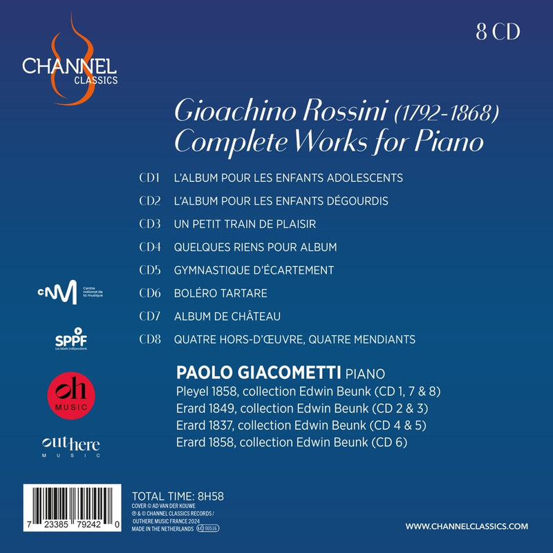 Paolo Giacometti presents the complete piano music of Gioachino Rossini, originally released as eight albums on Channel Classics between 1998-2007. Rossini's Peches...