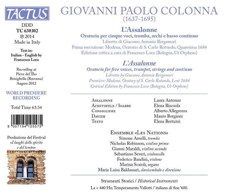 Among the thirteen oratorios by Giovanni Paolo Colonna, more than half are connected, by origin or tradition, to the court of Francesco II d’Este. Although in the early modern period the sacredness of monarchy was indisputable, it cannot be taken for granted that an oratorio was offered to a monarch in order to praise him unconditionally. Oratorios were often an instrument of admonition. This aspect is fully expressed in L’Assalonne, concerning familial and power entanglements between father and son. Maria Luisa Baldassari leads Ensemble “Les Nations” and a cast of 5 vocal soloists.