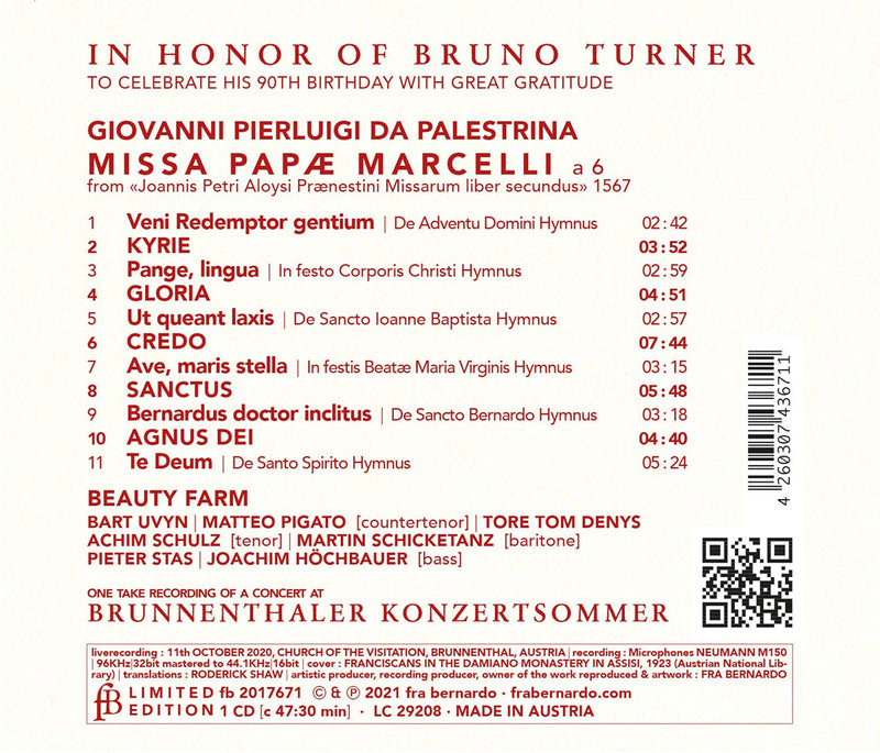 Fra BernardoMissa Papae Marcelli / Beauty FarmMid-16th century: Catholic Church music is threatened by a pandemic. All too worldly, artificial things had crept into sacred chanting to such...