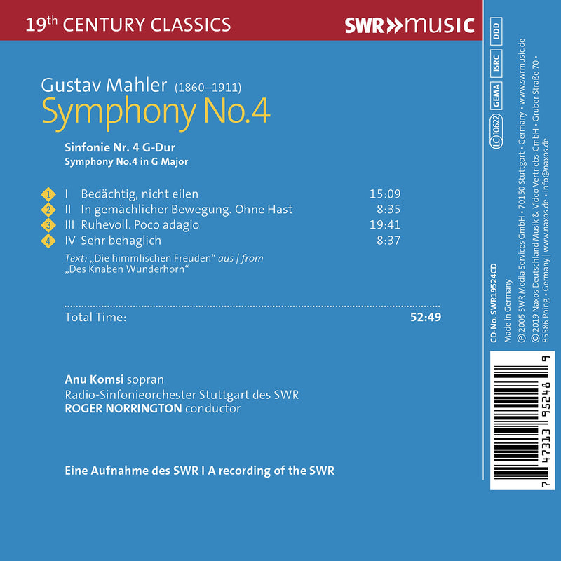 This is a re-release of the SWRmusic bestseller 93.164, containing Mahler's Symphony No.4 - one of his most famous and beloved works,...