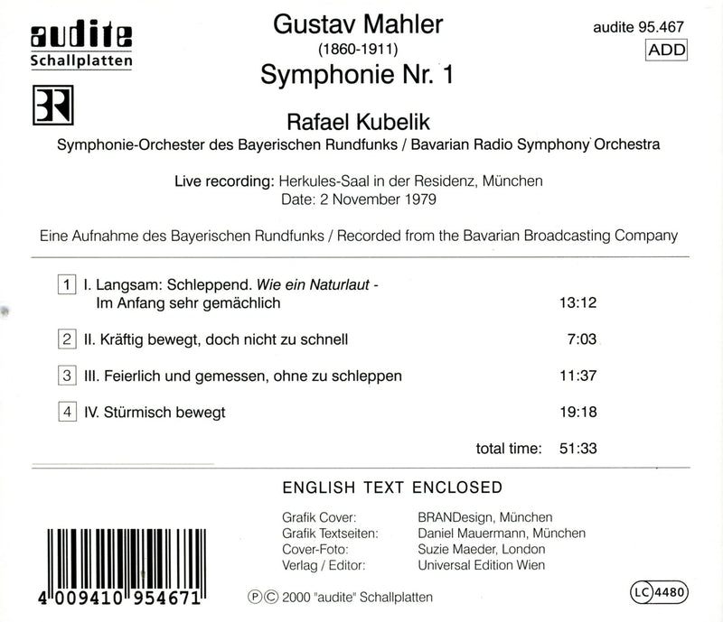 Audite MusikproduktionMahler: Symphony No 1 / Rafael Kubelik, Bavarian Radio