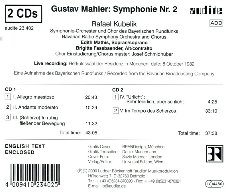 Audite MusikproduktionMahler: Symphony No 2 / Kubelik, Mathis, Fassbaender, Et Al