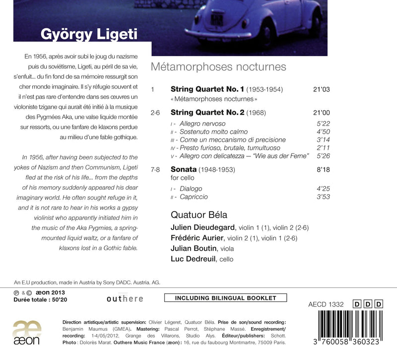 AeonGyorgy Ligeti: Metamorphoses NocturnesLIGETI Strings Quartets Nos. 1 and 2. Sonata for Solo Cello • Qrt Béla • AEON 1332 (50:20) Quatour Béla has named...
