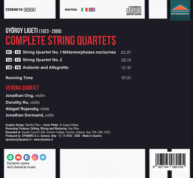 DynamicLigeti: Complete String Quartets / Verona QuartetThis album presents the complete works Ligeti composed for string quartet between 1950 and 1968. The two numbered string quartets are predated...