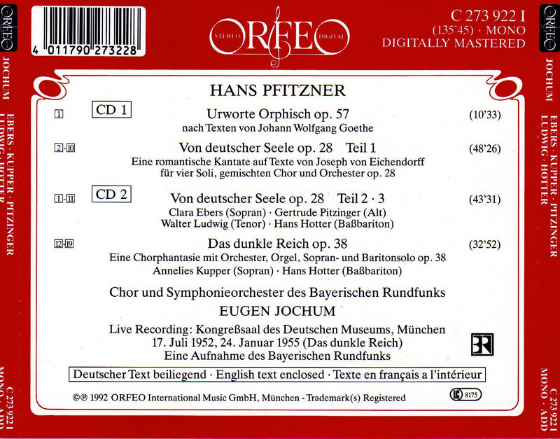 On SaleOrfeoPfitzner: The Christmas Elf / Eichhorn, Munich Radio OrchestraTo many contemporaries it might seem incomprehensible that Pfitzner had his poetic and musical masterpiece Palestrina followed by this slight fairy-tale opera,...