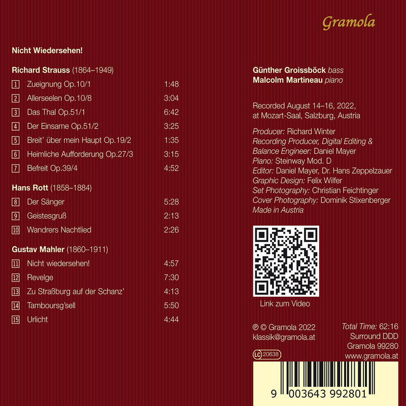 Gramola RecordsRott, Mahler, R. Strauss: Nicht Wiedersehen! / Groissböck, Martineau