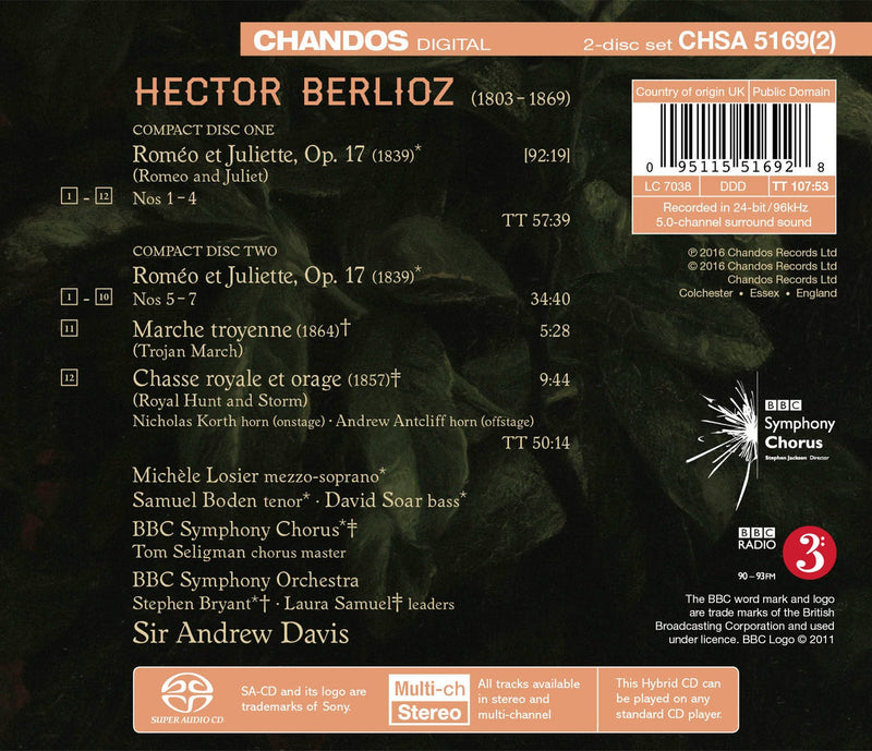 ChandosBerlioz: Roméo et Juliette / Losier, Boden, Soar, Davis, BBC Symphony