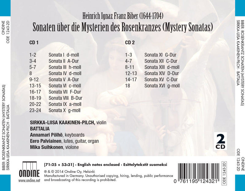 OndineBiber: Mystery Sonatas / Kaakinen-Pilch, BattaliaThis Ondine release includes Heinrich Ignaz Franz Biber's (1644-1704) 16 Mystery Sonatas, also known as Rosary Sonatas. This set of virtuosic violin...