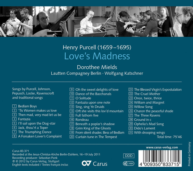 CarusPurcell: Love’s Madness / Dorothee Mields, Wolfgang Katschner, Lautten Compagney Berlin