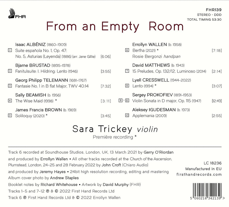 First Hand RecordsFrom an Empty Room - Solo Violin Music / Sara Trickey