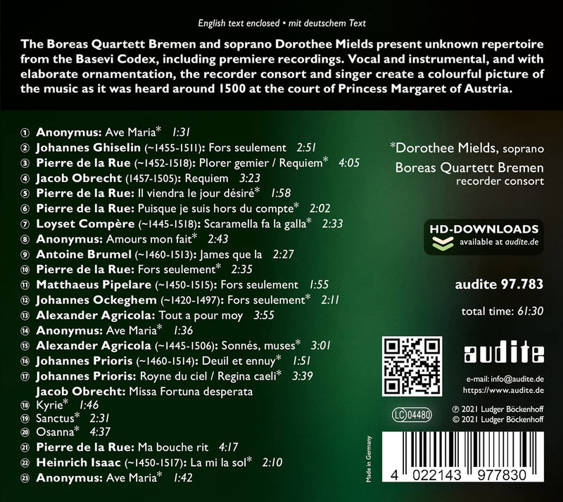 Audite MusikproduktionBasevi Codex: Music at the Court of Margaret of Austria / Mields, Boreas Quartett Bremen