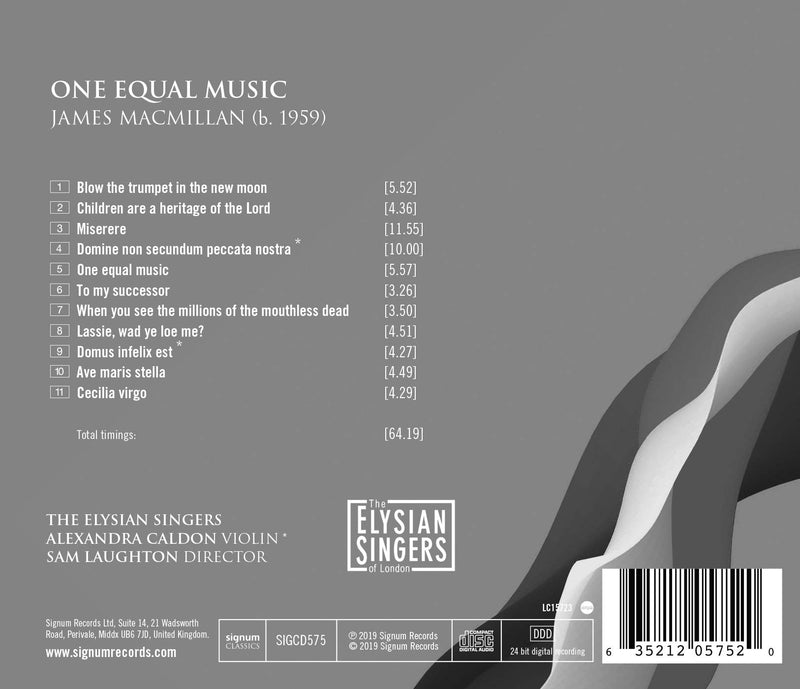 Signum ClassicsMacMillan: One Equal Music / Laughton, The Elysian SingersThe Elysian Singers of London celebrate the enormous and varied contribution of Sir James MacMillan (b. 1959) to the choral repertoire over...
