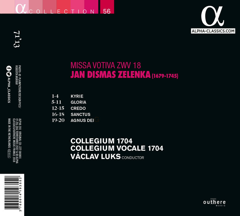 AlphaZelenka: Missa Votiva, ZWV 18 / Luks, Collegium 1704Missa votive is among a handful of liturgical works composed late in the life of Jan Dismas Zelenka, the Bohemian musician who...