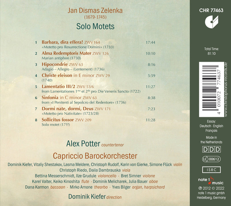ChristophorusZelenka: Solo Motets / Potter, Capriccio Baroque OrchestraJan Dismas Zelenka is a significant but frequently neglected eighteenth century composer who received his musical training in Prague and was active...