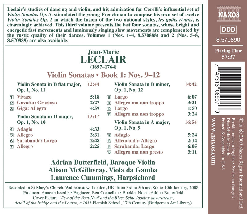 NaxosLeclair: Violin Sonatas Book 1 No 1-4 / ButterfieldRecording information: St. Mary's Church, Walthamstow, London, UK (01/03/2008-01/05/2008); St. Mary's Church, Walthamstow, London, UK (01/08/2008-01/10/2008).