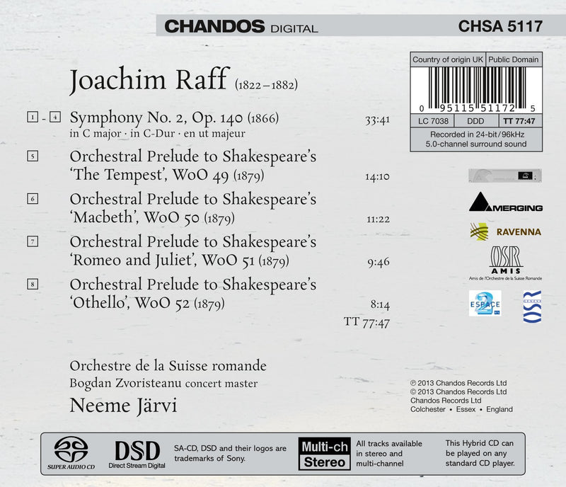 ChandosRaff: Symphony No 2, Four Shakespeare Preludes / Jarvi, Suisse Romande